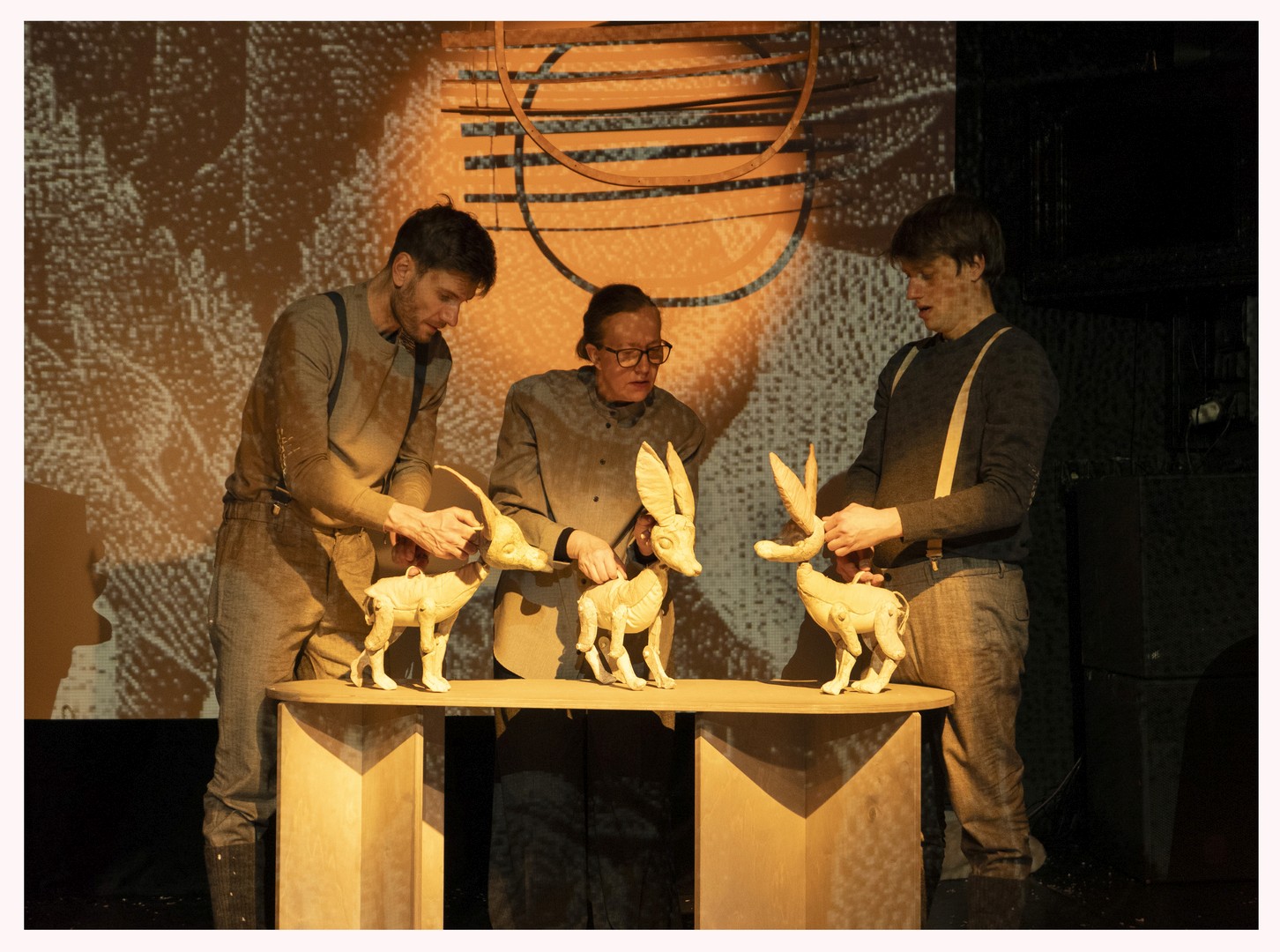 V gledališki predstavi Bambi, ki jo je po literarni predlogi dramatizirala dramaturginja in gledališka ustvarjalka Brina Jenček, vstopamo v kompleksen svet nevarnosti skozi uporabo gledaliških lutk in glasbene atmosfere v izvedbi vsestranskega umetnika Žigana Kranjčana. Preko lutk lahko mlajša publika na varni distanci preko performativnega objekta varno vstopa v svet čutenja in si ogleda kompleksnejše situacije, ki jih zgodba vključuje. Lutka postane živi posrednik med otrokovo domišljijo gledališko realnostjo. V predstavi lahko vidimo raznovrstne lutke, ki so izdelane iz naravnih materialov; iz lesa, bombaža, volne in papirja. Ti materiali nosijo sled narave in s svojo teksturo že sami po sebi predstavljajo bitja, ki imajo svoj vonj, toplino, teksturo in načine gibanja, od hitrih poskokov do prežanja v varnem zavetju grmičevja. Otroku s tem omogočajo, da tudi v gledališki dvorani začuti neposredni stik z gozdom in naravo v vseh svojih nepopolnostih, ki jih uporaba organskih materialov pri izdelavi lutk prinaša. Oblikovalka lutk in vizualne podobe, beloruska umetnica Liudmila Skitovič, je že pred nekaj leti v našem gledališču dokazala, da organska izdelava in toplina, ki jo lutke nosijo, pomaga celostno uprizoriti pomembne zgodbe, ki bodo z gledalci ostale tudi po ogledu uprizoritve. Estetska podoba jesenskega gozda, ki pogosto spremlja uprizoritve Bambija in je s pomočjo vizualnih manifestacij prisotna tudi pri nas, je nosilka melanholije in spokojnosti. Jesen je čas spremembe v naravi, ki mirno sprejema svojo minljivost, spremembo podobe in počasno umiritev naravnih ciklov, saj so spremembe del življenja in se vsako leto vrnejo v naravnem zaporedju. V kombinaciji vsebinske zasnove in vizualnih postopkov se skriva večplastnost zgodbe in uprizoritve: Bambi se uči sprejemati življenje takšno, kot je, dostojanstveno, z razumevanjem in bojem proti nasilju. V jesenskem gozdu se prelivajo topli, mehki toni, svetloba postaja zastrta, listje šelesti in se zavija v sivino po tem, ko listje zgnije in se jesenske barve umirijo, umaknejo, da bi naredile prostor speči zimi. To je tisti občutek tihega slovesa, ki v gledalcu v naši uprizoritvi omogoča spokojni pogled na neizbežnosti, ki so neprijetne, ampak imajo pomemben razplet za polno, pogumno in tudi veselo življenje.